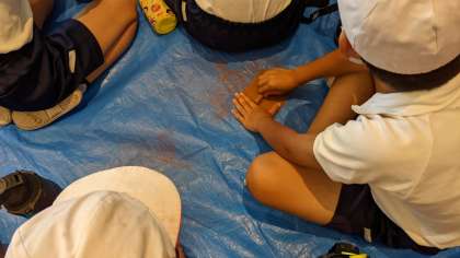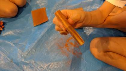 木の柄を紙やすりで好みの濃さになるまで擦っていきます。