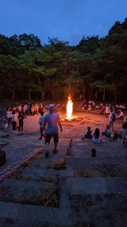 火の神のお話があり、火の守に分火され中央の薪に点火されました!