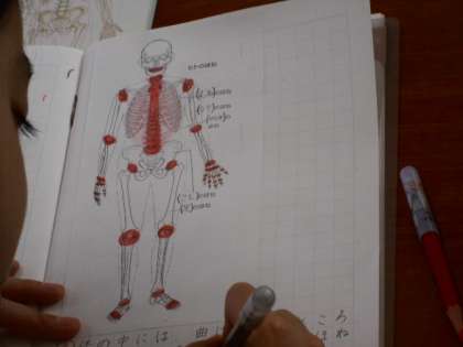 動画も見ながら曲がるところを確認したり胸の骨や頭の骨が内臓や脳を守っていることにも気づきました。