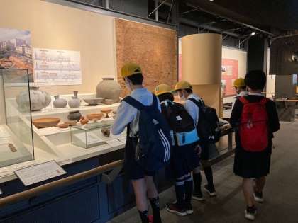 歴史博物館に到着。学校の授業で学習したことをもとに展示物や説明を読みながら、より詳しい内容を学びます。