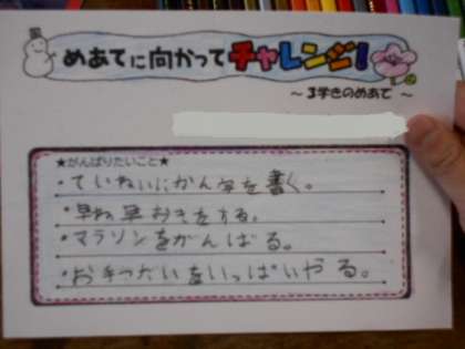 教室では係を決めたり、冬休みのことをお友達に話したり、3学期のめあてを決めたりしていました。