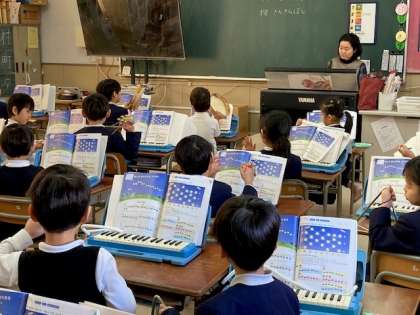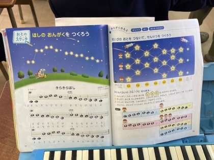 1年生の音楽の学習では、「きらきらぼし」の合奏の練習をしています。