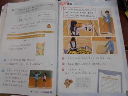 今日は1mのものさしを使って「みのまわりのものの長さ」を予想してからはかります。