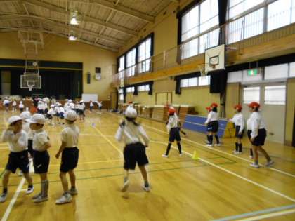 長なわにチャレンジしたり、なわとびの練習をしたり、ドッジボールをしたり。