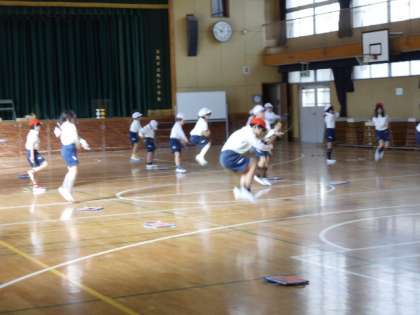 カードにはその跳び方を何回飛べたら7級や5級などのレベルが書いてあるので、クリアできた子は色を塗っていきます。