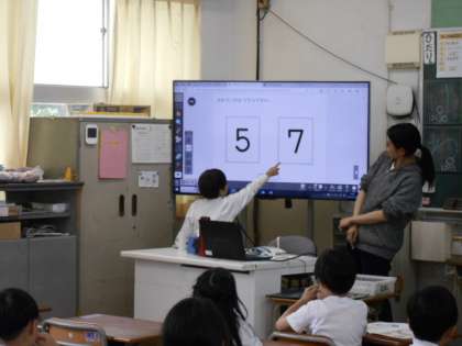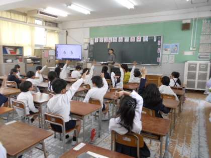 「5と7では7のほうがおおきいです!どうですか?」と前で答えるとみんなで「グー」のサインです♪
