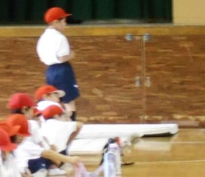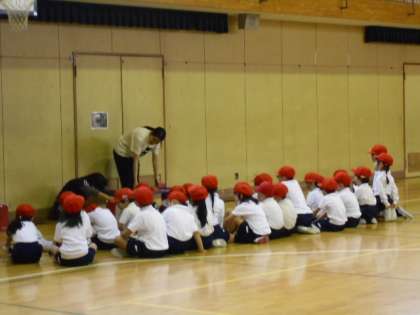あいにくの雨模様でしたが、体育の時間を使って講堂でできる種目を行いました。