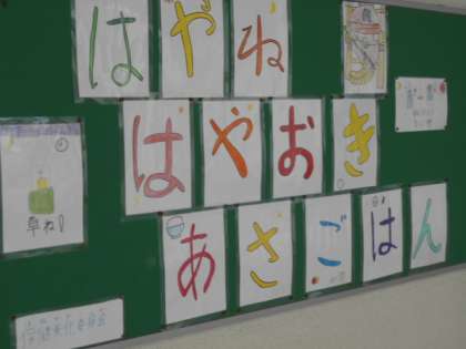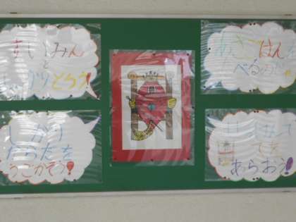 給食室前の掲示板にも上手に掲示しています。