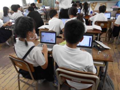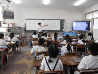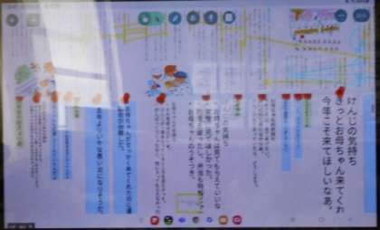 タブレットを使って書き込み互いの意見を交流したり全体で考えたりしました。