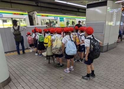 初めての遠足ですが、ホームでは静かに待つことができました!