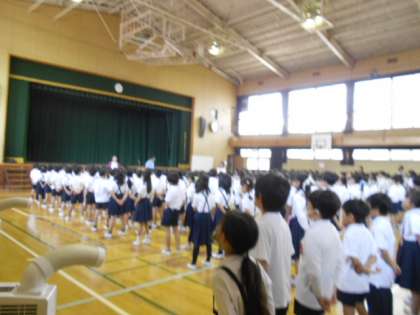 校長先生からは「みなさん、1学期本当によく頑張りましたね。勉強や運動だけでなく、友達と仲良くしたり、助け合ったりすることができました。」「明日から夏休みに入りますが1夏休みにしかできないことにチャレンジする。2「いのち」を大切にして危ない遊びや危険えことをしないようにしましょう。」とお話がありました。