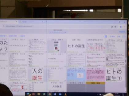 赤ちゃんのことやお母さんのおなかのこと、妊娠中に気を付けていることなど、様々なテーマでタブレットを使って調べ、プレゼンにし、発表していました。