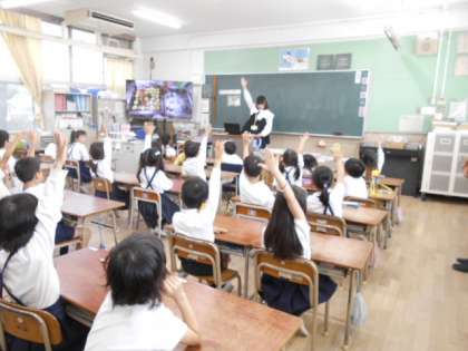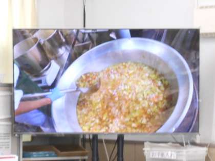 栄養教諭の先生が、「何をしているところでしょうか?」と動画を見せながら質問すると、