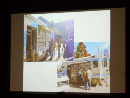 図書館には遠くて図書館まで来れない人のための移動図書館「まちかど号」があることも教えていただきました。