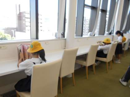 図書館には座って読めるスペースもあります。窓際ではお菓子作りの本を読んでいる子もいました。