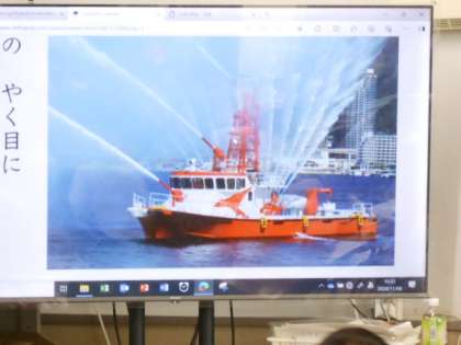 消防艇の役目とつくりについて調べます。