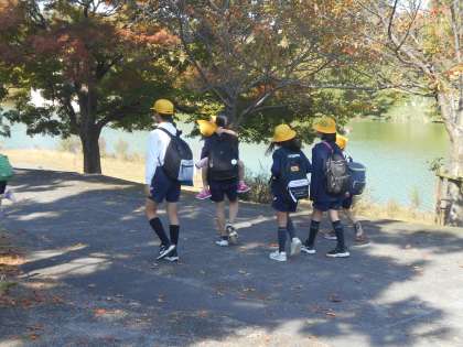 歩くのに疲れた1年生を抱っこしてくれる高学年のお姉さんの姿もありました。