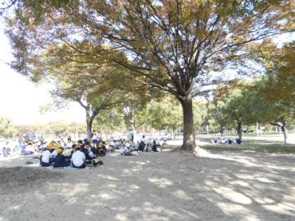 高学年が低学年のシートを敷くのを手伝ってあげたり、「みんなで「いただきます」しよう」と声をかけたり・・・