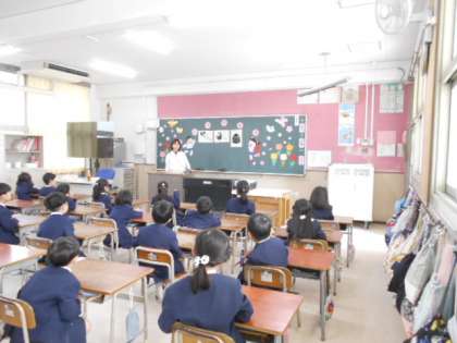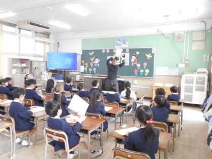 1年生の子どもたちは、教室で朝の用意のしかたの練習をしました。