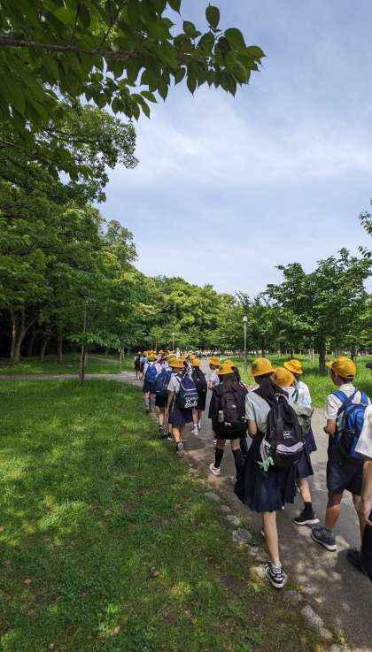 森ノ宮の待機場所から地下鉄の駅に向かいます。3学年の大移動です!