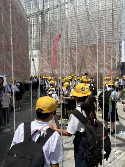 5年生はヘルスケアパビリオンのアトリウムを見学します。