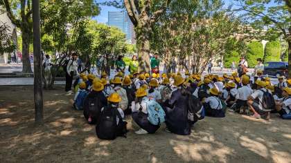 ガイドの方から、「積極的に質問をしたり、5年生のときに学んだ大阪大空襲の話をしたりと学ぶ姿勢がある素晴らしいお子さんたちですね。」と褒めていただきました!