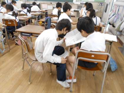 自分たちにできることは何か友達と意見を交換しながら考えます。