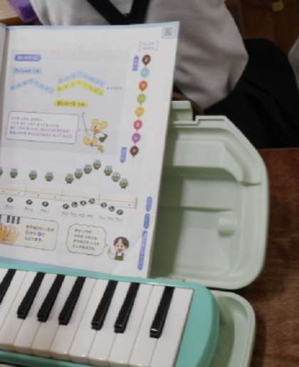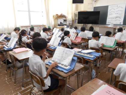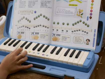 「かえるの がっしょう」の曲を鍵盤ハーモニカで演奏します。
