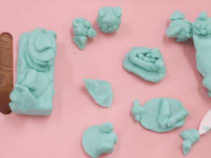1年生の教室では、、粘土でいろいろなものを作っていました。