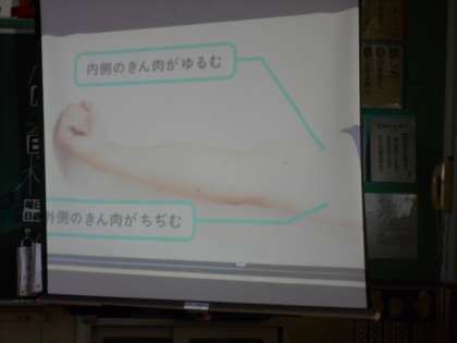 「ヒトの体のつくりと運動」の学習で、筋肉についての学習をしました。