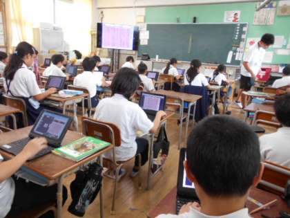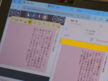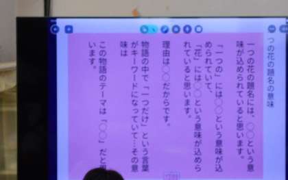 みんなで共有できるよう、一人1台端末を使って書いています。」