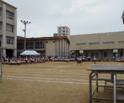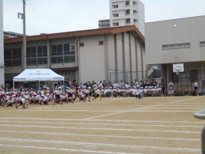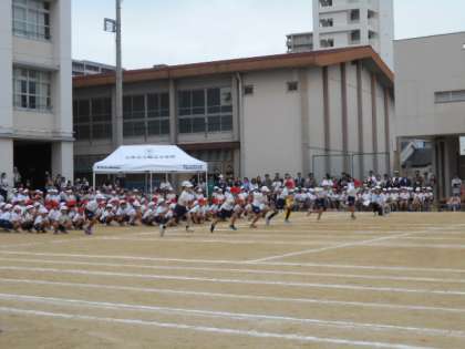 1年生は初めての運動会!ゴールに向かって一生懸命走ります。