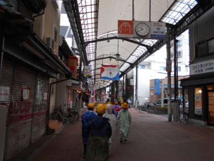 商店街の方が「鯰江小学校の2年生の子どもたちが、社会見学に来ています。みなさんよろしくお願いします。」と放送を入れてくださいました。