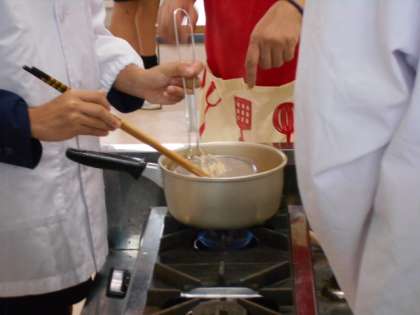 こぶだしをとって、具材を煮ます。火を通りやすくするために大きさも考えて切っていたので調理もスムーズに進んでいきます。