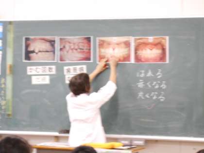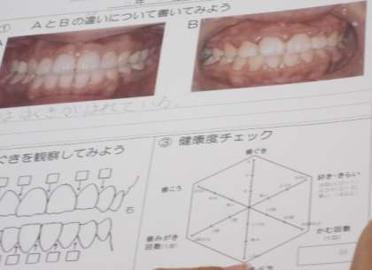 「歯と口の健康教室」で、歯科衛生士さんから歯周病や歯肉炎のお話を聞きました。