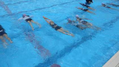 水の中でじゃんけんしたり、プールサイドをもって浮く練習をしたり・・・