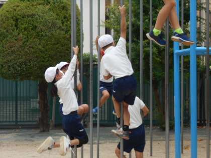運動場では、ドッジボールやバスケットボールなど、クラスや学年の子とも遊んでいました。