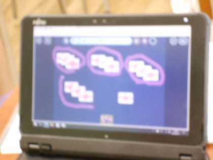 かむ力の測定では、専用のガムを1分間噛んで、タブレットで撮影し、アプリへ読み込んで測定しました。