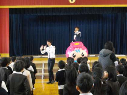 児童の皆さん、「いち、いのち いちばん」で、絶対に交通事故にあわないよう気をつけましょう。