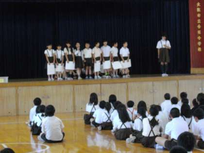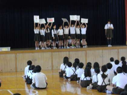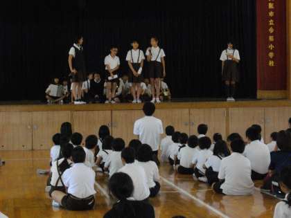 本日のテーマは、6月12日に開催される「いまふくフェスティバル」での出し物やお店について、各学級の児童が紹介することです。