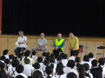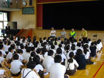当日は、上畠連合町会長や「地域見守り隊」のご代表からご挨拶いただき、本校児童代表からは、地域見守り隊の皆さまに対して感謝の言葉を述べました。