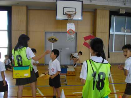 4年生:シルエットクイズ(教室)と玉入れ(講堂)