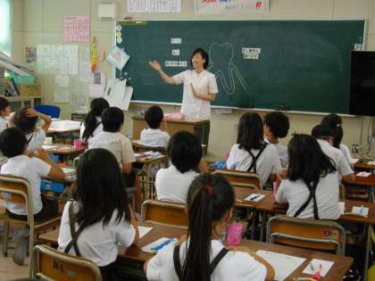 7月9日(火)、学校医(歯医者さん)と歯科衛生士の方が来校され、各教室で歯磨き指導や歯と口の健康等について、特別授業をしていただきました。
