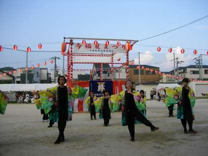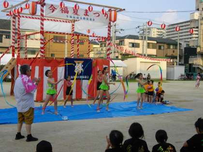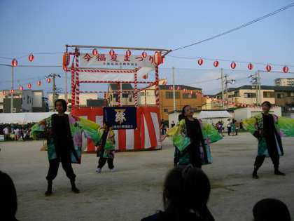 大人の盆踊りが始まる前に、今福小、放出小、諏訪小の子どもたちも踊りを披露しました。幼児たちの踊りがとてもかわいかったです。
