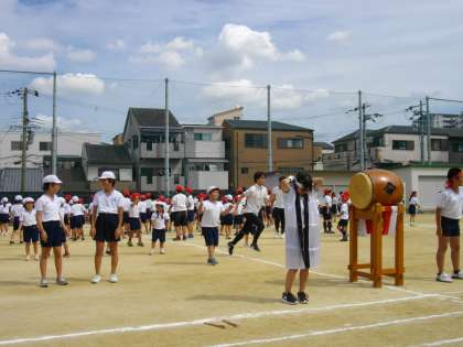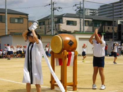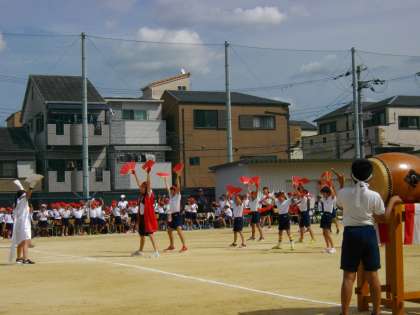 (6)では、赤組・白組の応援団が、一所懸命応援しているようすです。