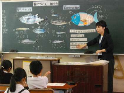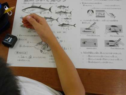 「お魚についてしろう」というテーマで、子どもたちは、お魚の骨や身がどのような栄養があるのか等について学習しました。