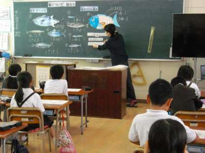 10月15日、3年生と2年生の教室で、他校から来ていただいた栄養士さんに「栄養指導」を行っていただきました。