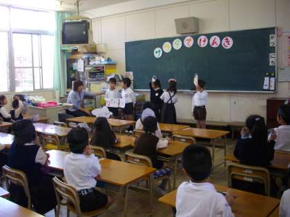 3時間目、学習参観……1年「サラダでげんき」、2年「かけ算」、3年「大きい数のわり算」(3年生は、習熟度別少人数指導で授業を行いました。)