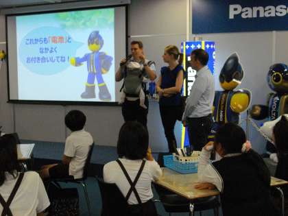 本日はたまたま、ドイツにあるパナソニック関連会社で働くドイツ人夫妻(赤ちゃんも)が研修でPanasonic乾電池工場を見学に来ていました。
