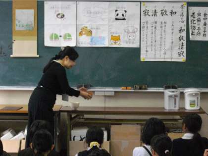 毎年、木島さん他3名の方が来校され、子どもたちが茶道の礼儀を学びます。